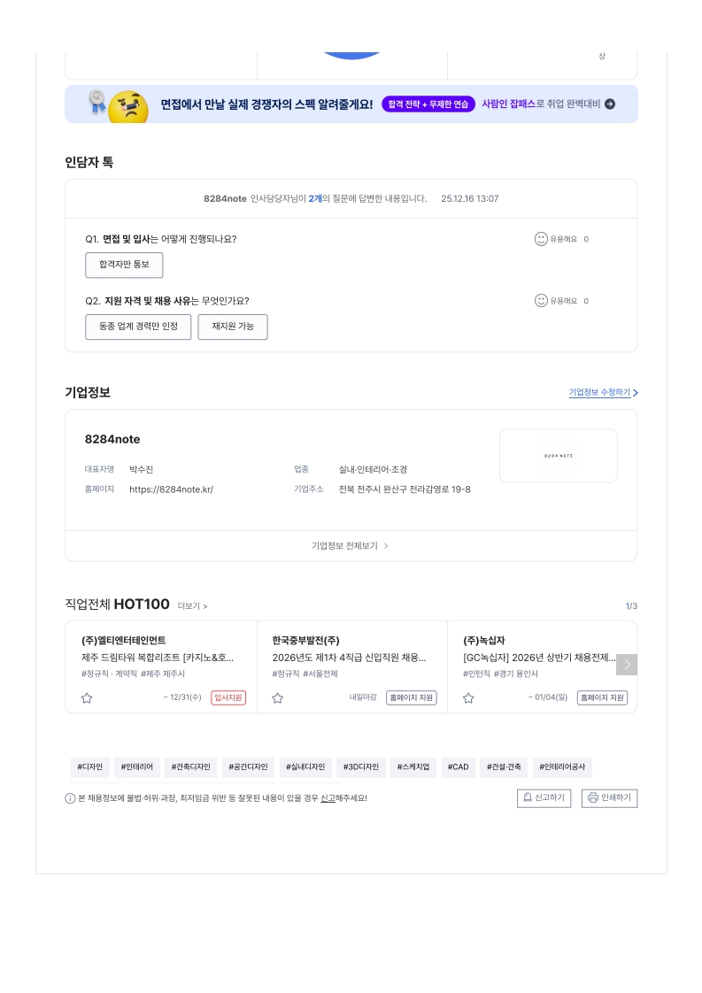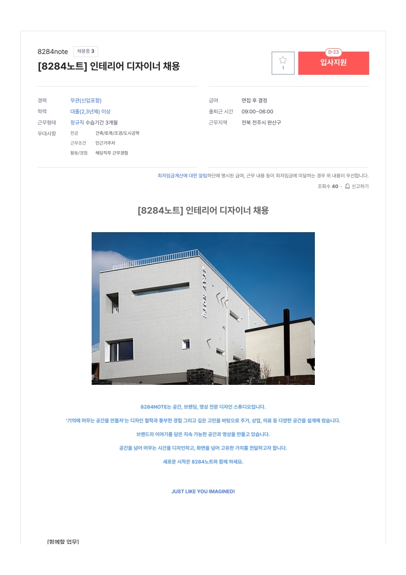 8284노트 인테리어 디자이너 채용 안내(~01/15)